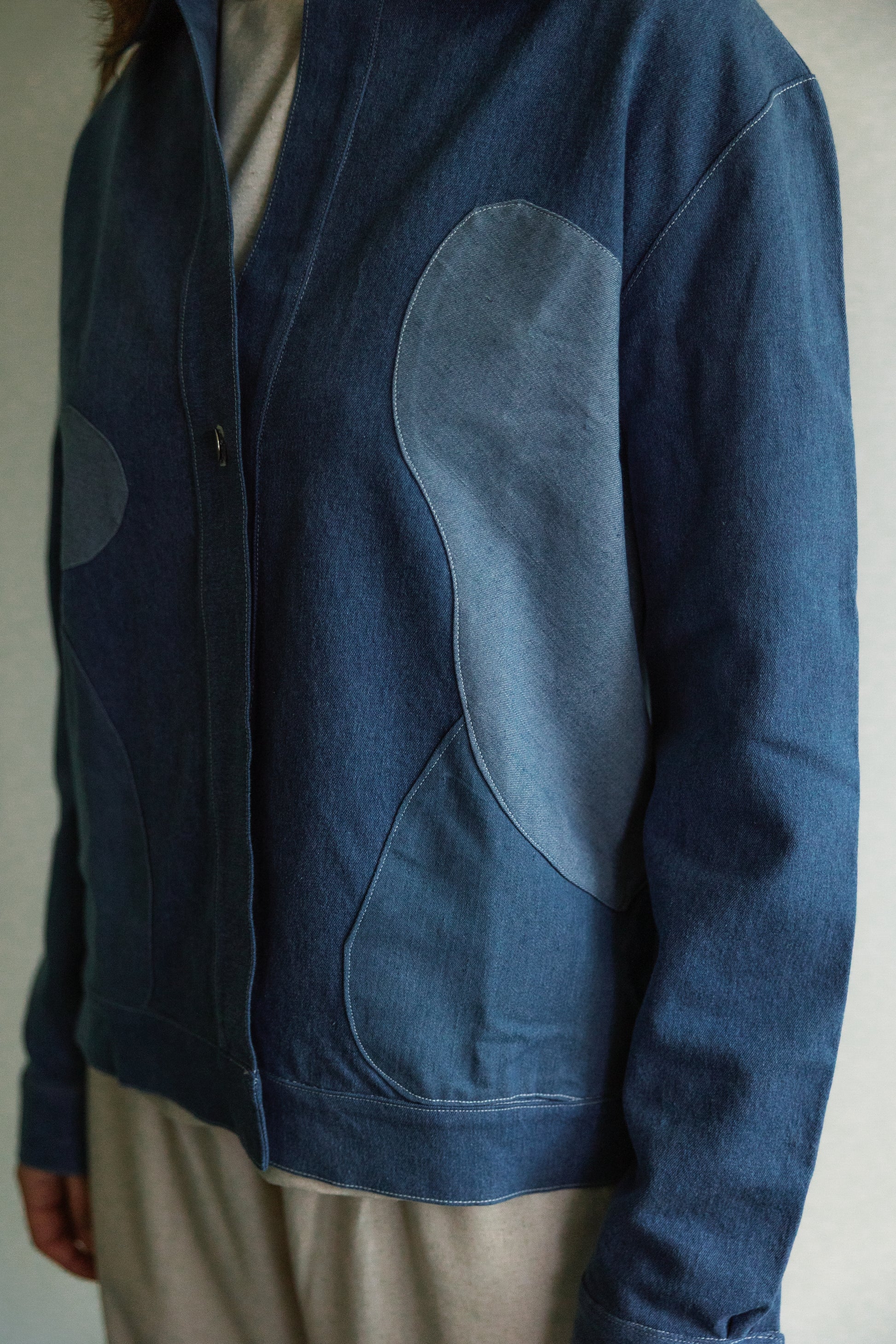Het denimjack heeft een modulair ontwerp; de mouwen en kraag kunnen op verschillende manieren gedragen worden. De verschillende lagen worden met de hand gesneden om zo min mogelijk materiaal te verspillen, waardoor elk jack uniek is.